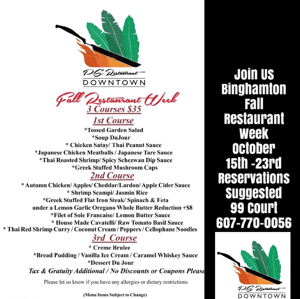 Looking to try something new for dinner? Spoil yourself with a meal at PS Restaurant in Binghamton, NY. At our fine dining restaurant, we serve a delicious menu of inspired entrees from all around the world.